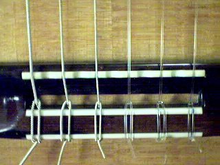 | Notice the area between the tie block and saddle. It goes all the way through the bridge. | |