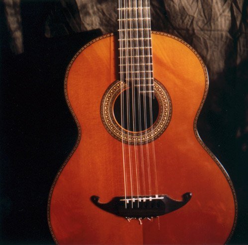 What exactly is a GRAN-guitar? Well, it has the size and shape of a classical guitar, but in addition to the traditional 6 nylon strings the GRAN has a set of 6 light-gauge steel strings strung similar to a 12-string guitar except that the steel strings are lower in relation to the soundboard. The guitarist chooses by the stroke of the right hand between three variants: Only nylon, in which case the instrument sounds much like a classical guitar but with added resonance. The second variant, only steel, and the third, nylon and steel simultaneously- this offering brand new possibilities concerning timbres, tunings, and dynamics! The performance technique is the same as for the classical guitar. The relationship of the GRAN-guitar and the classical guitar is based on the same idea of that of the clarinet and the saxophone, same fingering, different instrument.