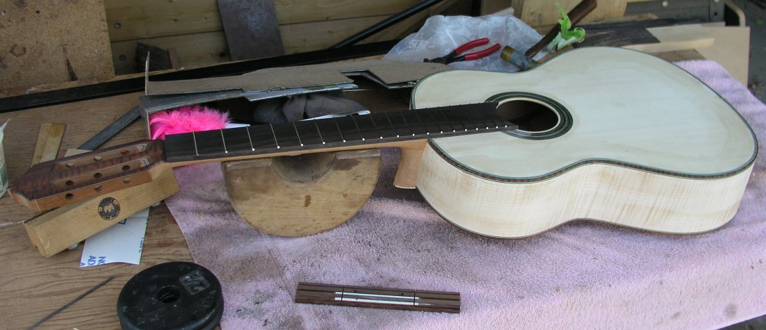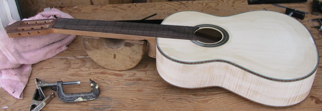 | Attaching the fingerboard. | |